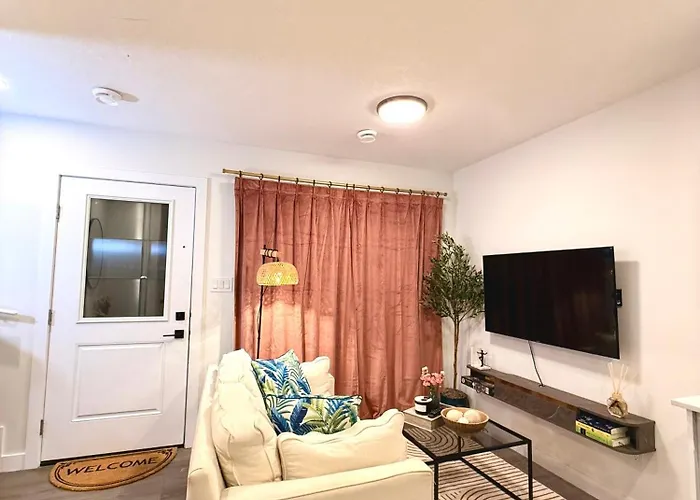 Das 2Bed Lagos House Backyard Suites Downtown Edmonton liegt im Viertel Northeast Edmonton, in einer Entfernung von 15 Autominuten vom Flughafen Edmonton City Centre. Auf einer Terrasse dieses 2-Zimmer-Apartments können die Gäste entspannen und einen Ausblick auf die Stadt genießen.
